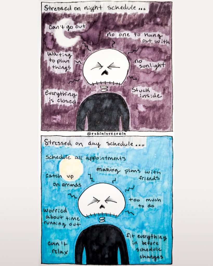 Artwork: “Stressed” Comic by Liberty RPosted onNovember 24, 2019November 24, 2019 A comic submitted by Robin Erickson.You can follow her on Instagram.